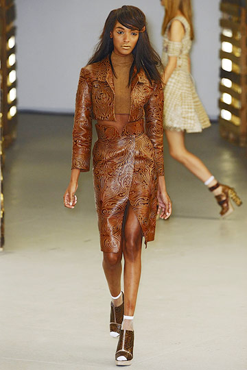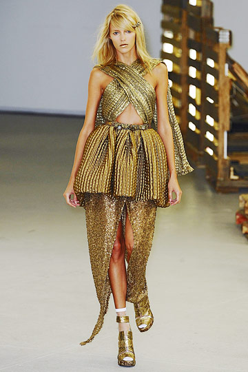 my love for rodarte is well documented within this blog, and this season the mulleavy sisters have failed to disappoint me. it's just fresh inspiration, something we've never seen before. i just adore the wood prints and the gold is simply fantastic. i still think rodarte has their colour scheme's mixed up with the seasons though! my ultimate favourite collection so far!
